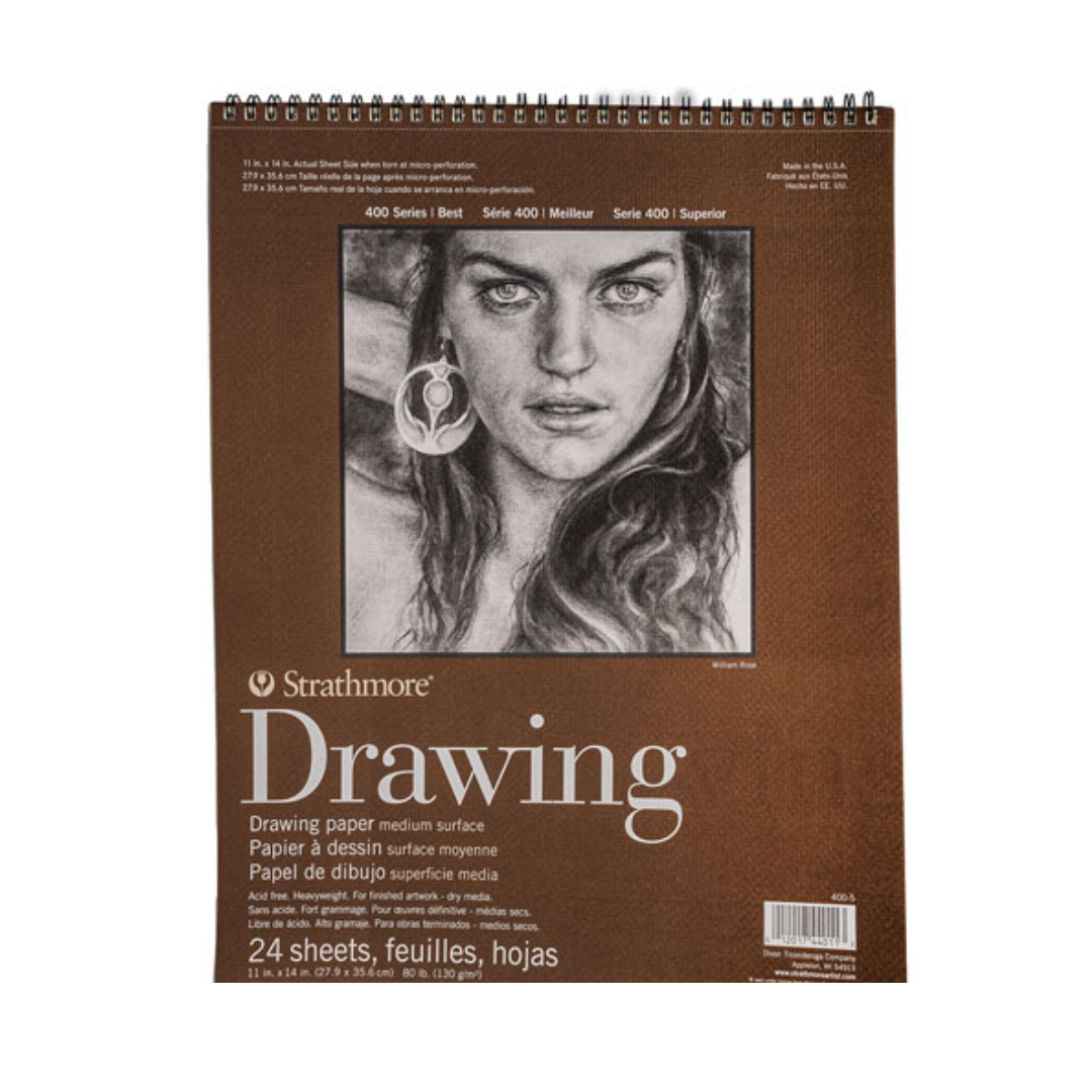 🤎Dibuja con facilidad y calidad con el papel Bloc Strathmore Drawing. Con 24 hojas resistentes y superficie media, es perfecto para bocetos con carbón, tinta o lápices de colores.