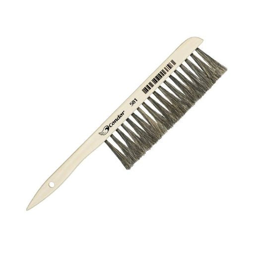 El cepillo Condor 581 cuenta con cerdas naturales diseñadas especialmente para la limpieza eficiente de restiradores. Su construcción robusta y materiales de alta calidad garantizan un desempeño profesional, facilitando la eliminación de residuos sin dañar las superficies.