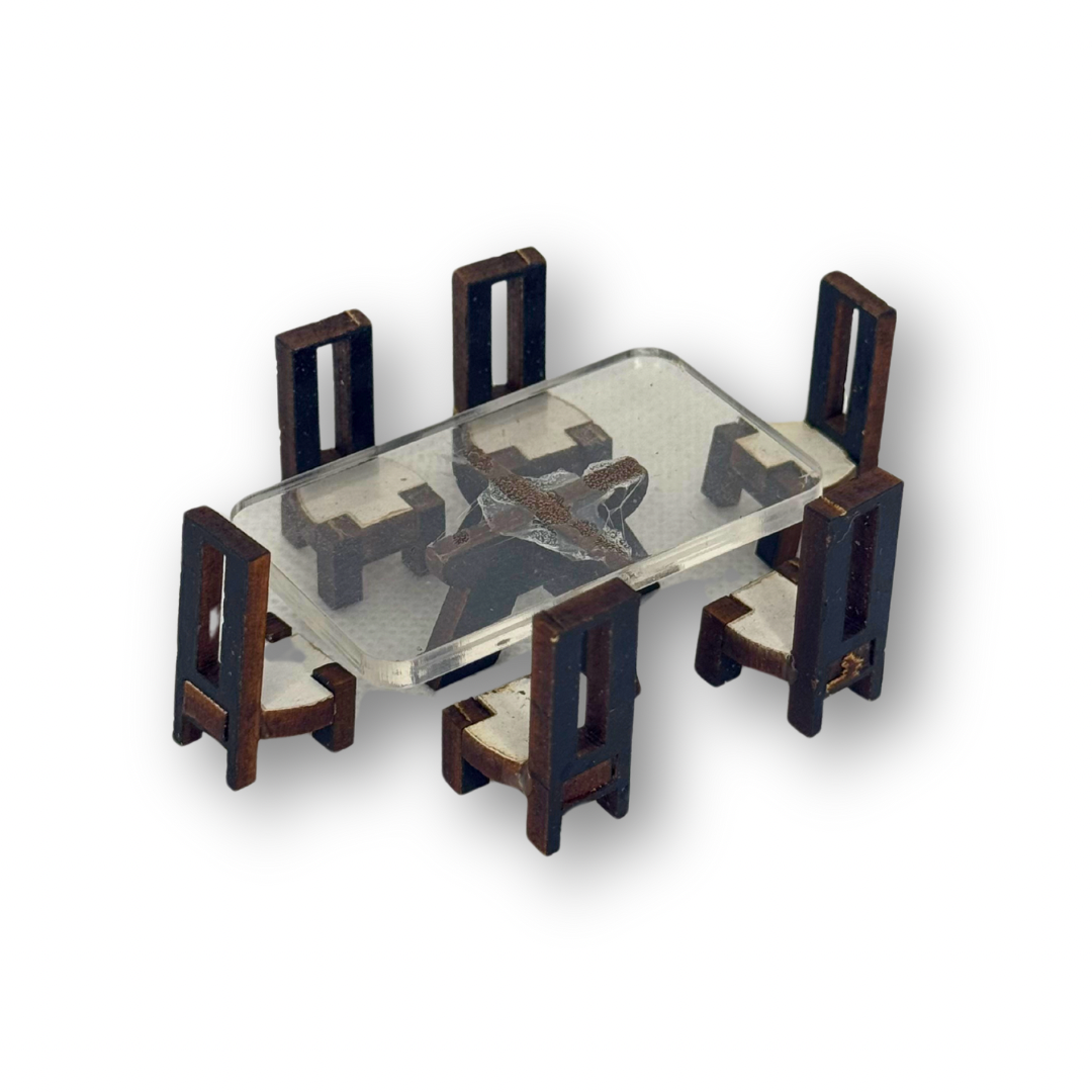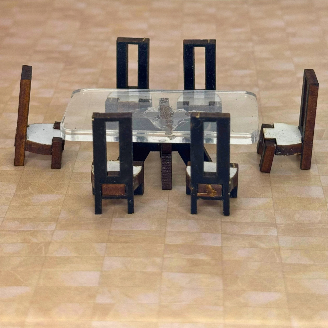 ✨Comedor para 6 personas con cristal miniatura para maquetas de escala 1:50