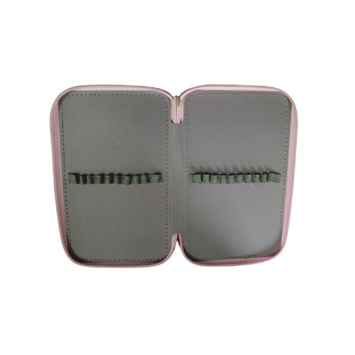 Esta lapicera cuenta con cuatro divisiones internas diseñadas para organizar lápices, bolígrafos y plumones de forma eficiente. Cada sección posee cierre individual, asegurando la protección y fácil acceso a tus instrumentos de escritura y dibujo.