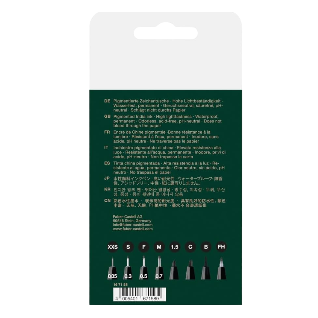 🖤Faber-Castell Marcadores Pitt Artist Pen con 8 Plumones de Tinta China en color Negro de diferentes puntas (0.05,0.3,0.5,0.7,1.5,C,B,FH), ideal para ilustradores, diseñadores, calígrafos y artistas