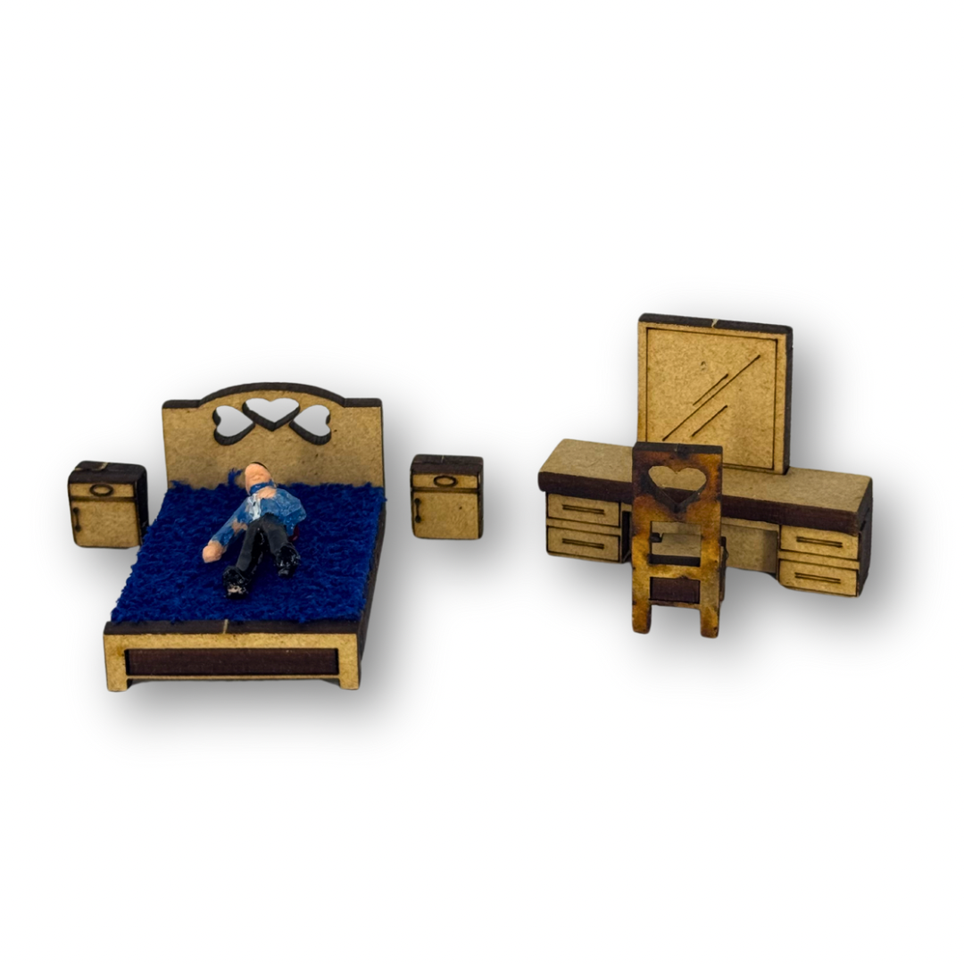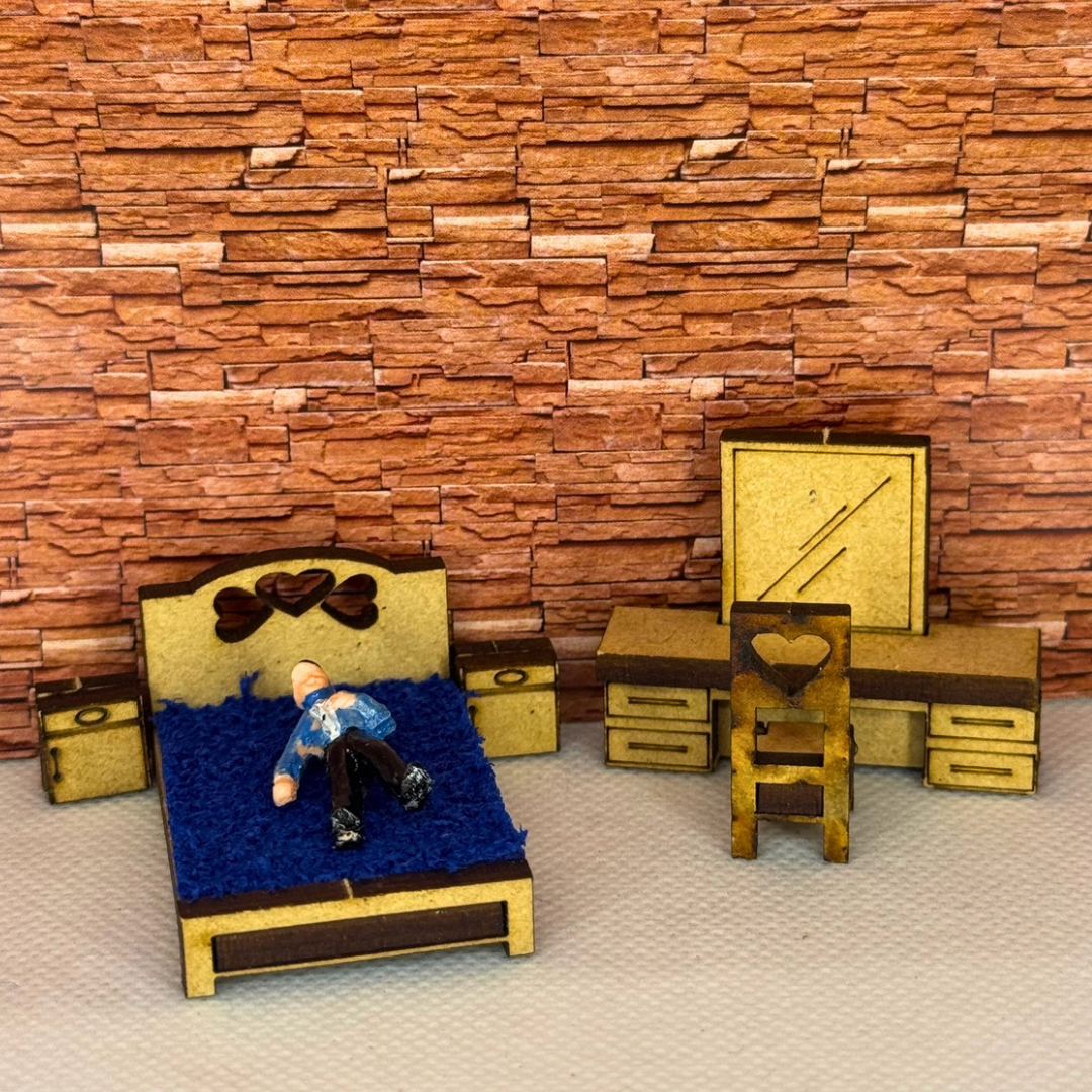 ✨Recámara matrimonial de mdf miniatura para maquetas de escala 1:50
