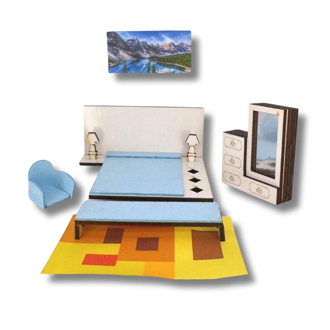 💫Incluye cama, tocador, cuadro, tapete, reposa pies y sillón.