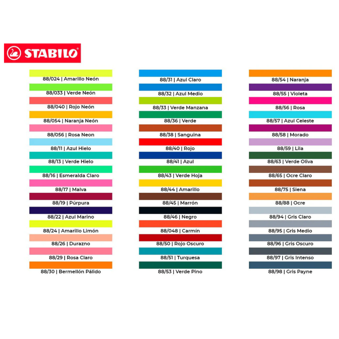 💛Su cuerpo hexagonal es cómodo para largas sesiones de trabajo. Disponible en 65 colores, incluyendo 6 neón. ¡Prueba los Stabilo Point 88 ahora!