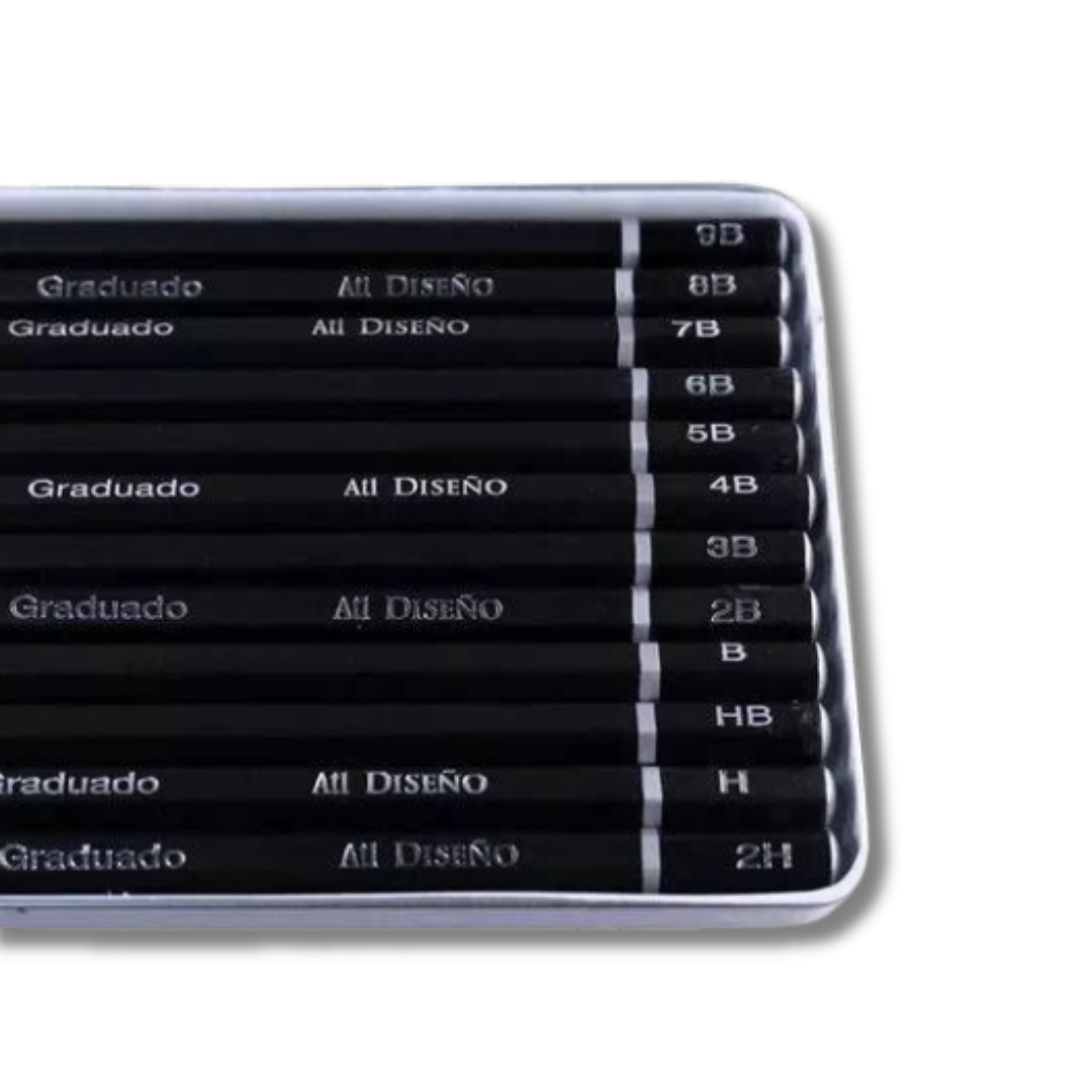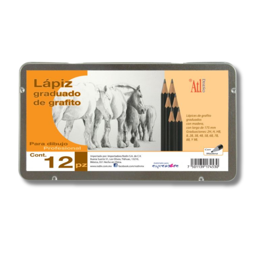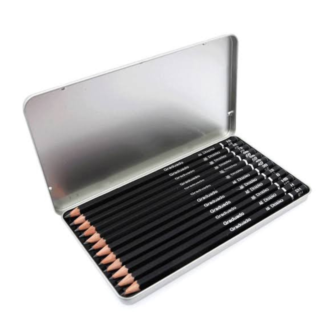 Estuche metálico con 12 lápices de grafito con distintas graduaciones
